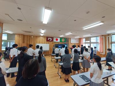 明日は、長距離走大会が開催されるため、全校終礼をおこない、コースの説明や留意点など話がありました。