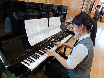 福祉科1年も佐敷分教室の皆さんと合同練習中で、大きな声でしっかりと歌ってました。