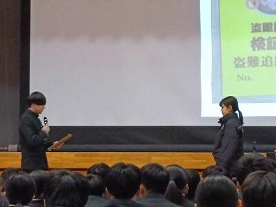 ある生徒から、「今、自転車のカギが壊れてますが、その場合どうしたらいいですか?」という質問が出ました。それを聞いたみんなの頭には同じことが浮かんだのではないでしょうか?警察署の方からは「すぐに直すか、ワイヤー状のカギもあるので購入してください。」との答えでした。
