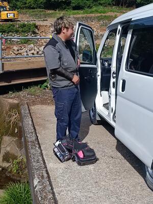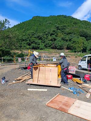 取材当日は、7時過ぎに伺いました。社員の方々と手際よく資材等の積込み等していました。多く言葉を交わすことはありませんでしたが、これもチームワークのなせる業かもしれませんね。