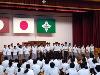 まずは、夏休み中の部活動や各種競技会の表彰が行われました。詳細はまた後ほど…