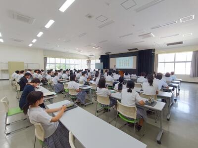 7月2日(火)、くまもと被害者支援センター「ゆあさいどくまもと」から支援員の広岡様、上塚様にお越しいただき、「安心・安全な関係のために ~性暴力について考えてみよう~」をテーマにご講演いただきました。性の境界線を守る性行動のルールや法律の話、自分が被害にあったとき、友人から性被害の相談を受けた場合にどのように対応していくかなど、スライドをつかい丁寧かつ分かりやすく話していただきました。
