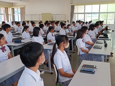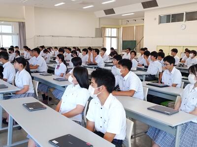 7月19日(金)終業式が行われました。校長訓話では、芦高生が様々なことに一生懸命取り組んでいることに対するねぎらいをはじめ、「命を大切にする」、「善意について」、「稚心を去る」といった話、各学年に夏休みをどのように過ごしてもらいたいかといった話をしていただきました。