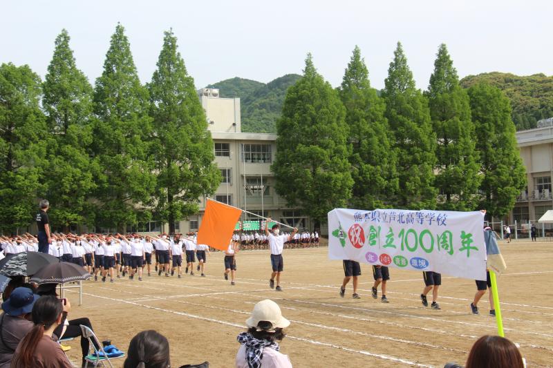 令和3年度の芦北高校体育祭が、5月14日(金)に本校グラウンドで実施されました。体育大会としての実施は、平成6年以来ということで、27年ぶりの体育大会となりました。九州南部が梅雨入りしたニュースが数日前に出ましたが、梅雨の晴れ間をぬう形の素晴らしい晴天に恵まれての実施となりました。
