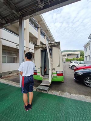 その後、福祉科担任の織田先生から「校歌指導」でした。音楽が全員選択ではないので、校歌を練習するという機会がこれまでなかったので、これで校歌を覚えてくれたことでしょう。