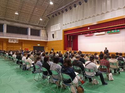 本来は、全校生徒対象なのですが、コロナウイルス感染症リスクレベル5に引き上げられたため、3年生のみとなりました。