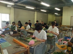 農業科1、2年生の授業の中で、フラワーアレンジメントを行いました。