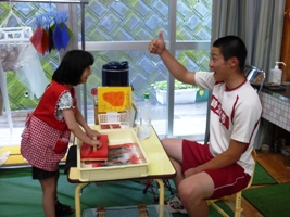 支援学校の先生に手順を教えて頂き、生徒同士でも楽しく盛り上がっています。