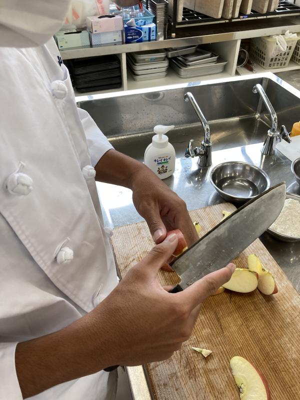 包丁を上手に使いさっと剥く生徒、初めてリンゴを剥く生徒。たくさんの発見がありました
