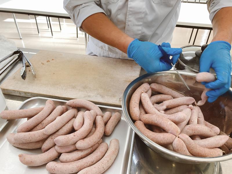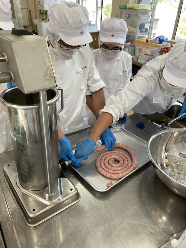 農業科3年生「食品製造」の授業では肉加工について学習しています。今回の実習では『ウインナーソーセージ』を作りました