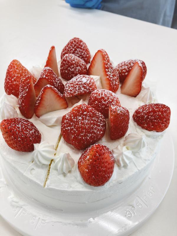 小学生の中には、ずっと1人でクリームを塗りたい子、上手く出来るか不安で後ろに隠れている子、味見したい!イチゴ食べたい!とお願いする子等々いろんな児童がいます。そこを上手に声掛けして抑制したり、誉めたり、きれいに仕上がるように修正しながら教えていく生徒の姿は本当に素晴らしかったです!3年間の成長を感じます。