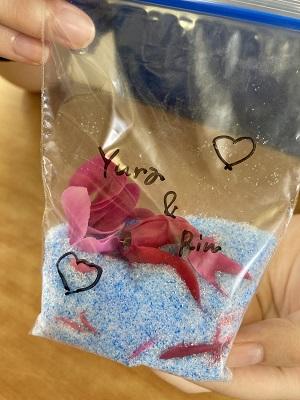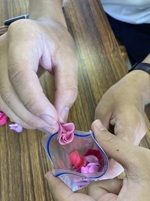 ジッパー付きのビニール袋に花弁を入れて、専用の『シリカゲル(乾燥剤)』をたくさん入れます。