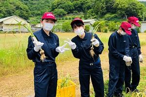 農場では、様々な作物や花苗などの管理に忙しい毎日です。今週20日(月)から農業科以外の先生方もたくさん、農場管理のお手伝いに来ていただきました。タマネギの収穫と調整、不知火『あしぽん』の剪定枝の運搬と粉砕、甘夏みかんの皮むきなどたくさんの内容を日替わりでお手伝いいただきました