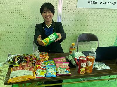 小学生のエネルギーに圧倒されながら見ていましたが、それに丁寧に受け答えしている高校生のすばらしさを感じました。芦高においで!と宣伝してくれている高校生もいました。残念なのは、今回は試食させてもらえなかったことです…(K)