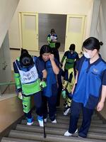 介護者から「車から降りますよ。足を外に出してください。」と日常の声掛けシーンですが、幻視症状があるときは、高いところから飛び降りを指示されているように感じるそうです。実際にゴーグルを装着しそのシーンを体感すると、悲鳴をあげて座り込む生徒もいました。