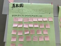 その後、グループに分かれて学科の紹介サイト作りをしました。まずは Google Jamboard を使ってアイディアを出し合いました。「見る人が知りたい情報はどんなものかな」、「どんな内容を掲載したら魅力が伝わるかな」と見る人の立場になって考えていました