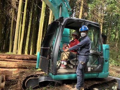 今日は、水俣・芦北の林業研究グループより講師を招いて、高性能林業機械研修と間伐実習を行いました。これまで何度か間伐をしてきましたが、やはりプロの技術はすごかったようです。