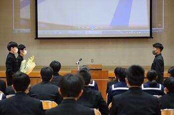 3年生の課題研究発表会が行われ、3年ぶりにリモートではなく、同じ会場で実施することができました。草野校長先生より課題研究の説明がありました。芦北高校林業科は、50年以上前からこの取組みをしており、学びの記録として「みねさき」という冊子を作っているそうです。