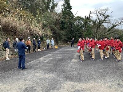 大野地域において、地元小学生と里山ボランティア活動の予定でしたが、雪の舞う寒さで小学生が参加できなくなってしまいました。そのため高校生は、大野地域の炭づくりの文化について学ぶことになりました。