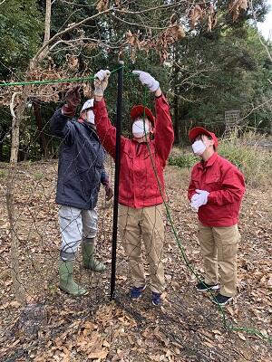 最後に箱罠を1基とくくり罠を2基、設置しました。農業科、林業科それぞれの立場で学ぶことがたくさんあったようです。これから定期的に確認していきましょう。