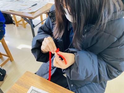 生徒は、手の向きや三角コーナーの作り方、注意事項などを丁寧に実演しながら教えていました