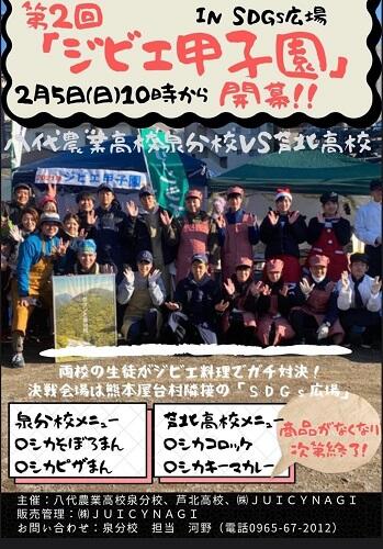 熊本市のSDGs広場において『第2回ジビエ甲子園』が行われました。シカ被害対策について学ぶ、芦北高校と八代農業高校泉分校の生徒がシカ肉普及のためにレシピ開発をして、どちらがたくさん販売するかを競いながら、シカ被害やジビエ料理の重要性を伝えるものです。
