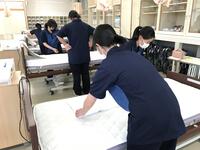 ほとんどの生徒がボディメカニクスを意識し、しわのないベッドメイキングができていました。