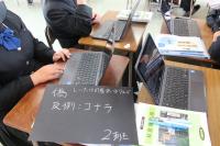 教科書やChromebookを活用し、互いに意見を出し合っています