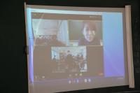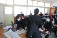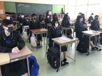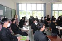 (リモートでの開催の様子、2年生は総合学習室、1年生は各教室での参加)