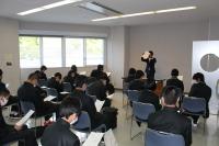 本日は、本校林業科卒業の前島先生が、生徒達に芦北高校同窓会「三太郎会」について話されました。