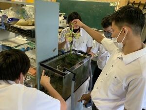 林業科では、演習林などで学んでいる実習実践や森林活動の他に、森林のシカによる被害を防ぐための狩猟や、アマモによる海の再生活動の取り組み等が紹介されました。昼