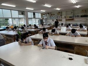 林業科では、森林や林業について学ぶ実践的な研修バスがあります。二年生は、八代市内の木材関係の企業を回りました。コロナ禍になり、木材の流通には大きな変化が起こっています。(ウッドショック:中学生の皆さんは、調べてみましょう♪)教科書だけでは学べないことを学ぶことができました。鉛筆