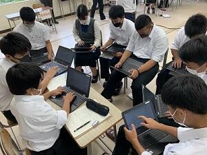 教科書やChromebookを活用し、互いに意見を出し合っていますグループ