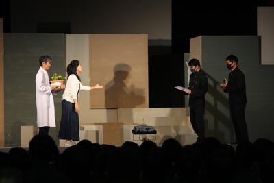 生徒達も、講演の冒頭から役者さんの迫真の演技に魅せられたのか、一言の私語もなく食い入るように演劇に集中して見入っていました。