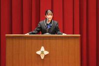 また、生徒会長の村上さんが生徒を代表して歓迎のあいさつを述べました。