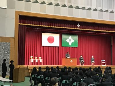 残念ながら、式歌や校歌は新型コロナ感染拡大防止のため、CDを聴くにとどまりました。