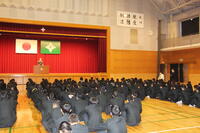 表彰式では、3年生の功績をたたえる様々な部門の表彰が、1、2年生が2階席から見守る中で行なわれました。
