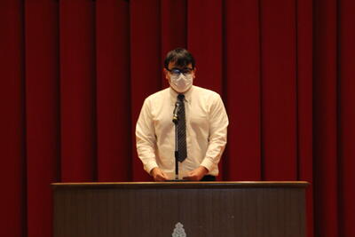 校長式辞では、丁薫校長が卒業生に向けてメッセージを話されました。豪雨災害から果敢に復興につとめる卒業生の姿や、各学科での取り組みについての奮闘をたたえられました。また、「人間は自分が考えているような人間になる」ために、辛抱強く、失敗にめげず、諦めずに、道を切り開いていってほしい、と願いを込められました。