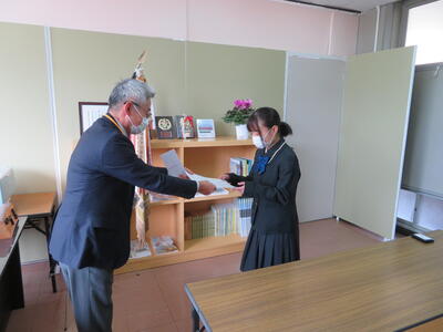 一般財団法人熊本公徳会の事務局長 甲斐壮一様が来校され、公徳文芸賞短歌の部で最優秀賞を受賞した3年農業科 濵田智恵さんに賞状・盾・記念品の授与が行われましたお祝いお祝いお祝い