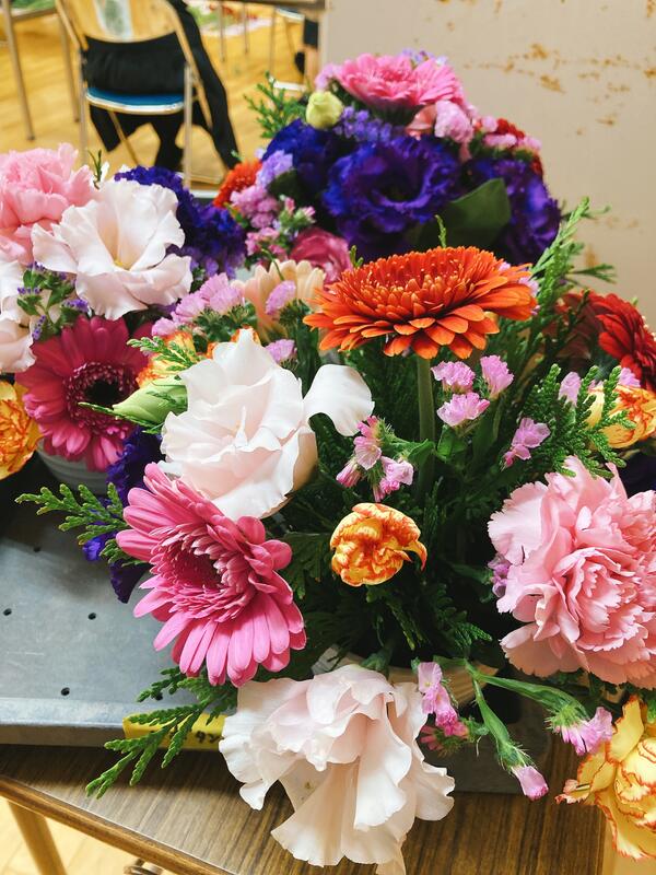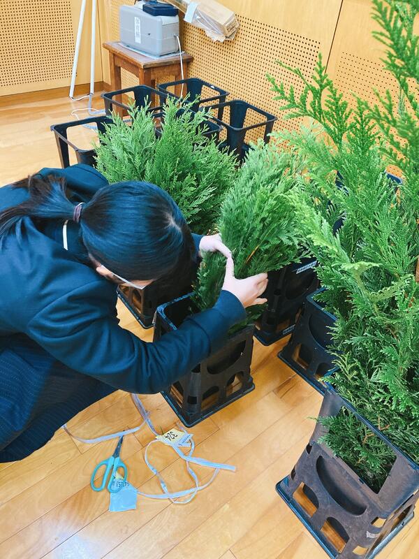 もう一つは卒業式の演台に飾る「フラワーアレンジメント」です。作ってくれた農業科1年川本さんは県大会で上位入賞したことがある実力者です笑う大きくて素晴らしいアレンジメントを完成させてくれましたピース