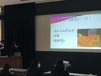 地域の魅力を発信したい、地域の課題を解決したいという思いから起業したことを生徒に伝えてくれました。また、開発した光合成細菌の話もしていただきました。これを使うことで、環境にもやさしく、収量アップや品質改善に効果があったことを教えてくれました