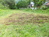 (水を与えます。近所の方のご厚意で山水を使用させてもらいました。)