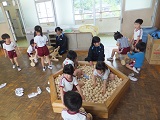 この教室は、幼い頃から木に触れ、木の魅力を伝える活動で、キリン組(4~5歳児)のみなさんと一緒に行いました。
