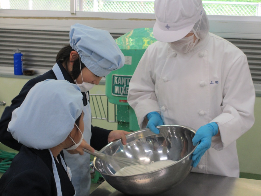 1年生農業科「食品製造」の授業でロールケーキ