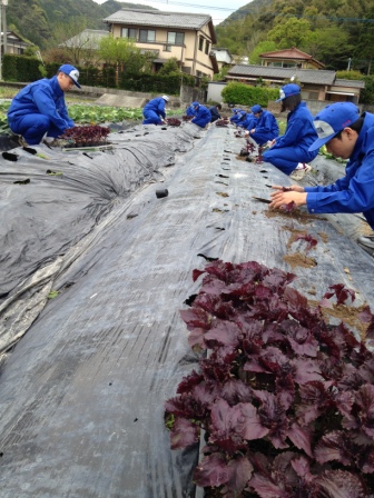 1年生農業科の「食品製造」の授業で『シソ苗の定植』実習を行いました。
