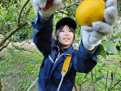 わが校の果樹園では、一年で最も活気あふれる「不知火(しらぬひ)」と「甘夏」の収穫実習が行われました