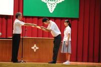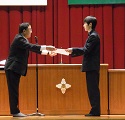 表彰式では、情報処理検定、部活動表彰(バドミントン部、空手道部、弓道部)、熊本の心の作文、介護コンテスト、校内漢字テスト等の優秀者が表彰されました。