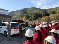 操縦を行っている生徒以外は地元の林業研究グループの方々から間伐のノウハウを教えていただきます