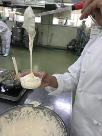 農業科1年生の「食品製造」の授業で小麦粉の加工、卵の気泡性について学習しています。9月9日の実習は『シフォンケーキ』でした。