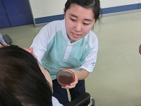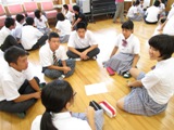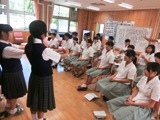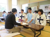 芦北高校福祉科3年生、芦北支援学校佐敷分教室3年生の交流学習を行いました。今回は、芦高祭で披露する手話ソングの練習です。はじめに、歌を覚えるために繰り返し歌いました。その後、分教室の生徒さんを手本として、手話を覚えました。今日は始めての学習でしたが、1番のサビの部分はどうにかマスターできました。これからも交流学習を通して絆を深め、芦高祭ではよりよい発表ができるように頑張ります♪